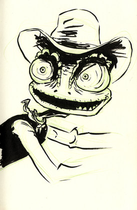 Inspired by the nod to "Fear and Loathing in Las Vegas" in the opening scenes of Rango. If you are a fan you caught it.Copic markers with Prisma markers on Bristol Board