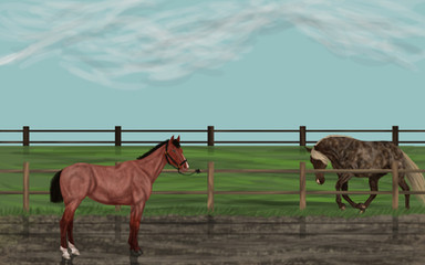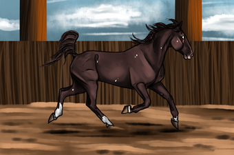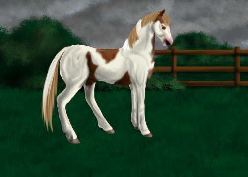 Alec walked towards the pasture which housed one of the smaller Archadian Warmblood's that were for sale today. He been following the breed for only a few weeks but had fallen in love with one stallion when he first laid eyes on him on the stable's website. When he had heard that today the stallion would be up for sale, Along with others mind you. This stallion was the reason he had come though. He leaned on the fence as he stopped in front of it. The small stallion was one of the shortest horses being auctioned today, With a few others near his height. Alec watched as the stallion trotted around the pasture, Picking up his pace as he snorted. More people were arriving to look at the oddly patterned stallion as he picked up his pace to a canter. He hit the breaks and slid to a stop, Turning quickly to the right and heading back towards the end of the pasture. Alec smiled to him self, He knew this was the right stallion for reining, He even had the perfect name if he was to win him, Running On Empty.:3 Finally done <3 Fallen in love with this boy. Trying for this horse [link]
