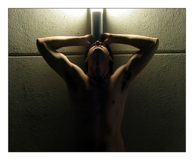 I love this picture, the lights are very cleverly placed which causes great shadows to define your body. This is also very evocative, and it's not as static as what you have in your gallery so far; I feel motion in this piece even though you are in fact standing still. Great piece really.