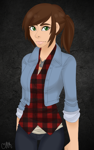 Aaa she's so pretty ;A;!! I love her jacket and hair <3 Great background colour choice too <33!!
