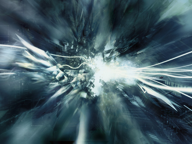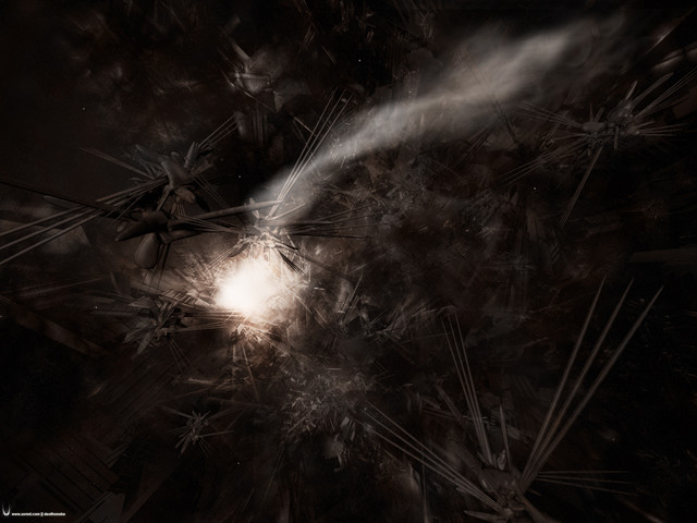 I rarely go for the abstract 3d stuff since it's usualy rather uninventive, but this is really rather nicely done. I like the model, it looks some real attention was given to it, and it's not just a bunch of 3d shards and what not. Also the lighting effects are pretty well done too.