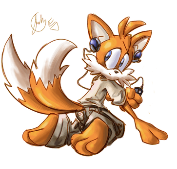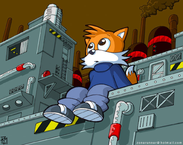 Another quick sketch (in the same style as my pic of Tataku Moniko). I was bored and wondered if I could try that 'sketchy' look as a proper style, plus I haven't drawn my zonefoxy for ages and I just felt like scribbling a pic of him without all the fuss and bother of careful planning and inking techniques.Here's my foxy fiddling about with one of the monitors from the old Megadrive games. The stories he is in are set around the Sonic 2 era (1992-1993) and contain lots of the more 'classic' Sonic references. I'm very fond of the old titles, you see.