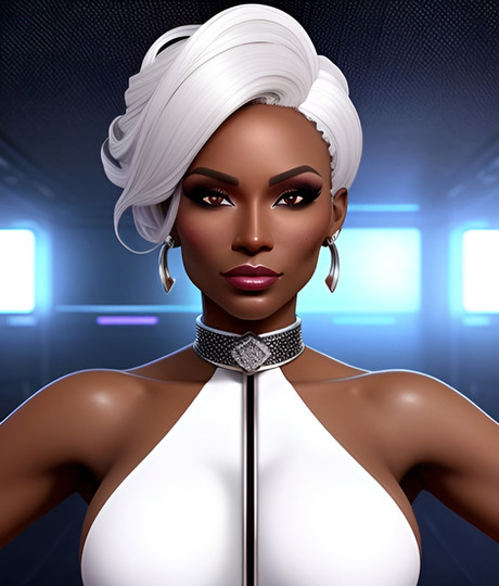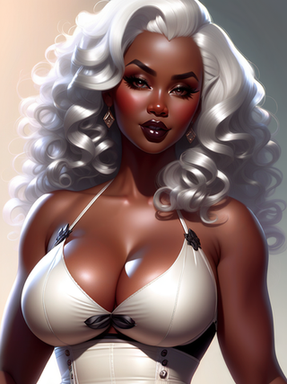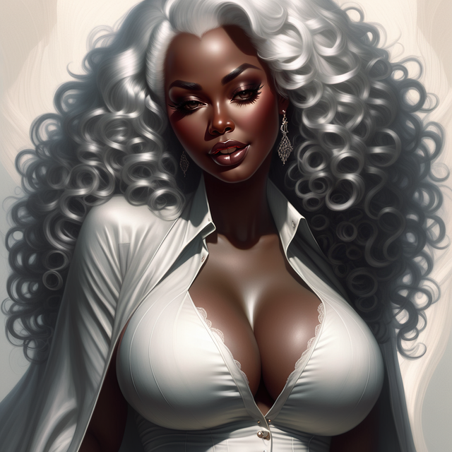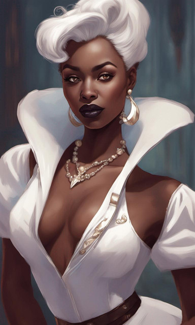 #blackwoman #conceptart #digitalartwork #hugebreasts #originalcharacter #portrait #portraitpainting #portraitwoman #whitehairgirl