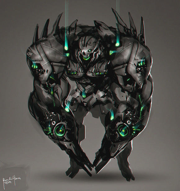 Love it! The eyes and torso somehow remind me of an eva; as scary as cool! (toshop, painter, Sai?