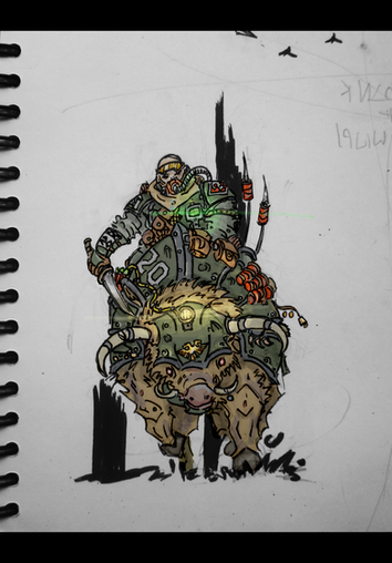This is excellent. I'm glad to see more people using the concept of war-pigs in their concept art, as I find them to be very fearsome and intimidating animals on the battlefield. May the mighty boars of justice protect you always.