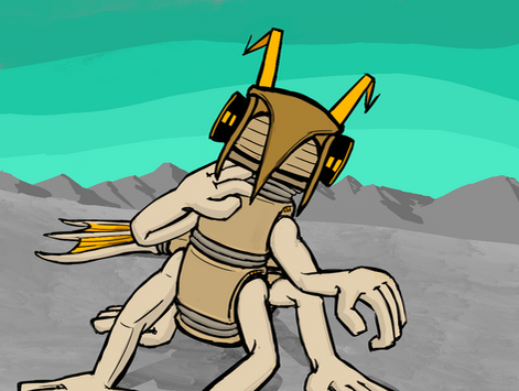 Humanoid blocky, rocky androids that were crafted in the burrows, a rogue faction within the Greater Systems Assembly. They had been in cooperation with primitives who they shared technology with and these distinctive androids are a product of that technological trade who are mostly chained AI at best.