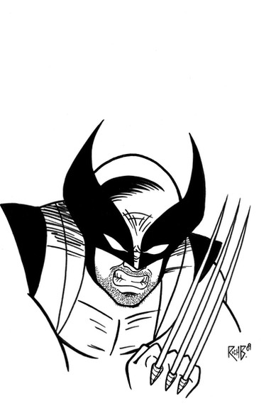 The way you drew Wolverine with his bulky form and silly biting of the tape made me chuckle. This looks like he has a Sam Keith influence going on in this design.