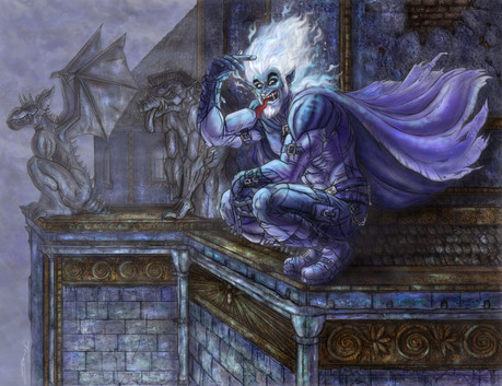 More importantly, it seems a bit overdone, but I'm a sucker for detail, the roman numerals floating around enhancing the otherwordly feel created by the bright colours and swirls, the designs etched into his scepter and clothes succeeding in making him extremely eerie and, well, ghost-like. I must say that I'm also particularly impressed by your take on his ghostly tail, truly looking like the gas it probably is.