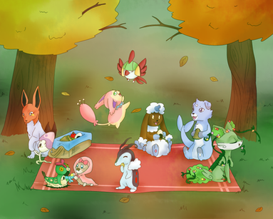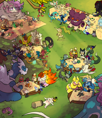 But even with my pen glitching the whole way through I loved drawing this one! Loved drawing all these kits and seeing them have a picnic together, so many cool designs~ And a lot of possums- 6/10 of them use the same palette and I love it