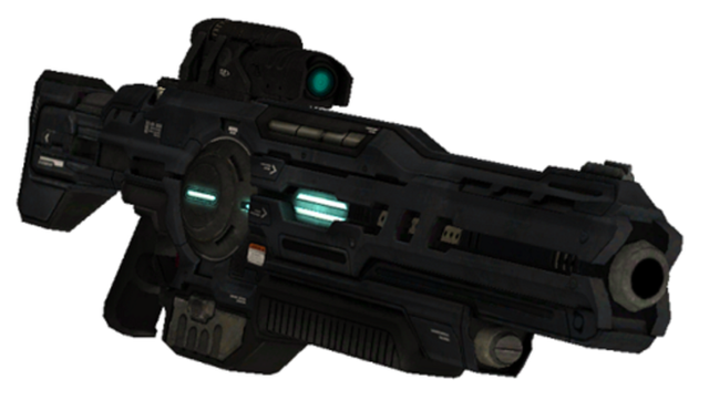 The T-55 Directed Energy Rifle/Advanced, or Storm Rifle, is the evolution of the standard Plasma Rifle and served various infantry during the violent Sangheili civil conflicts that followed the Human-Covenant war. The weapon now includes a modular coil set, a high-mounted cooling shroud, and an extended barrel, all contributing to greater overall performance in the field than its predecessor.-Fire Mode
