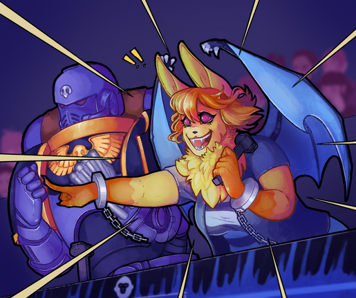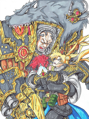 As of July, Korone has been doing a Let's Play of Doom 2016 as part of her DOOG series. Combining Benji's passion for Doom and a character who would be treated as a mutant in the 40k Universe, my client felt compelled to order a quick sketch comission of the two interacting.