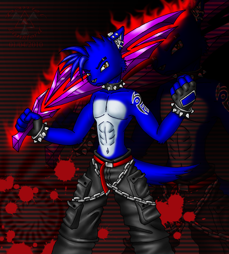 Perspecive and anatomy is awsome. Love the fur on the tail. The text and eyes are wicked cooL!