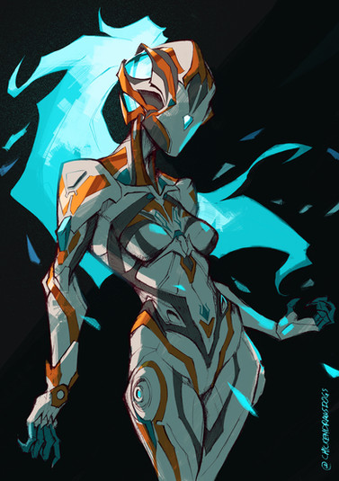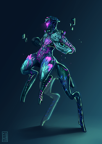On this picture I tried to mash together many things I like about aliens and biomechanic stuffs. And I also give a try to a little different, thinner lineart style. That thing on the back of his head is an energy core, and those „wings” on the sides of his head can be folded open, and they work as solar panels. I’m kinda proud of the hands, it was super fun to make them :>
