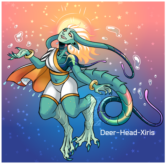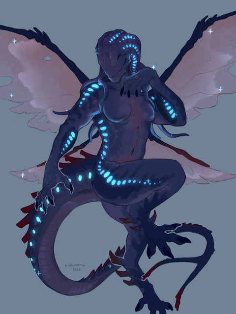 #alien #blue #demon #faceless #fantasy #female #horns #reptile #scifi #sketch #space #stars