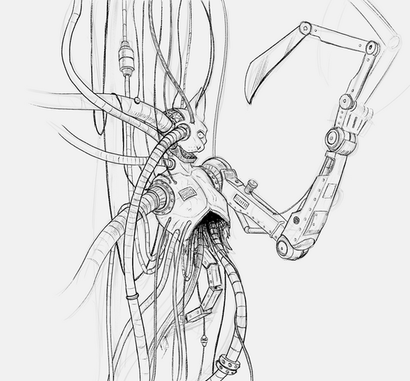 #anthro #furry #sketch #android #brain #bug #cyborg #female #insect #male #scifi #surgery