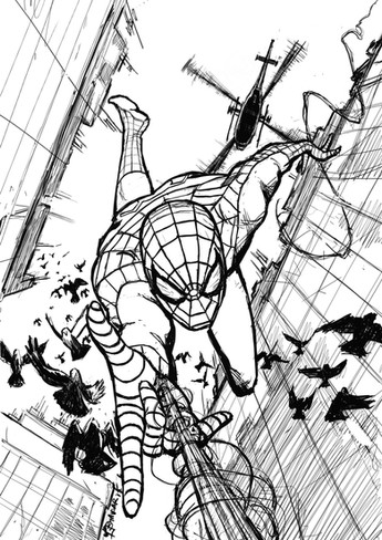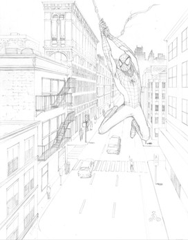 Wow man this is intense ! The drawing is really dynamic when we look at spider-man and the fact that the buildings arent straight gives more movement into the drawing.