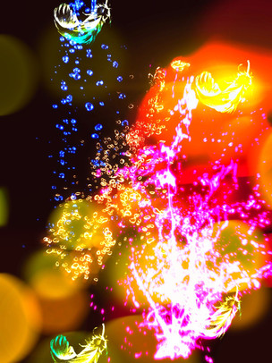 Cool idea. Are the mains shapes elliptic splits with square in some sort of crop? Love the particles and lighting.