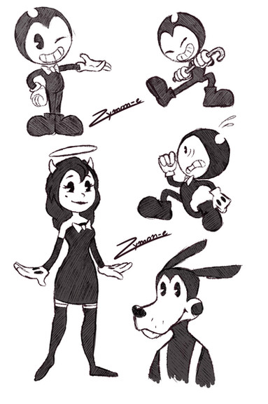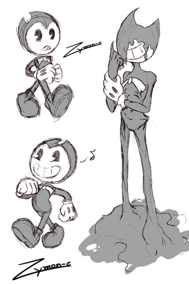 I made a lot of sketches of Bendy before this drawing