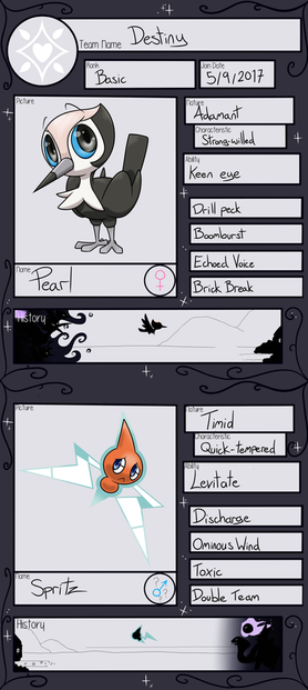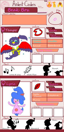 Sanaa comes from a family of many different birdlike Pokemon who came from near and far. She’s very proud of her mixed ancestry, having been raised to be a bold and strong pokemon by her father. She’s never one to deny another pokemon of help, but she does like to brag about her success after.