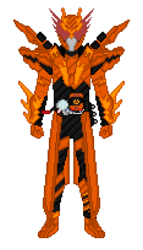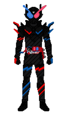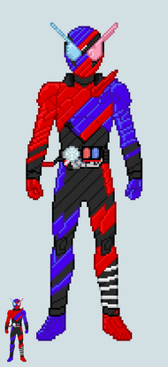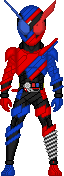 [Rabbit and Tank!] [Are you Ready?] [Overflow!] [Kurenai to Blue Warrior!] [FullFullRabbitTank!] [Yabei!] [Wowww!]A theoretical upgraded super form for Build, based on the Rabbit and Tank FullBottles, known as Kurenai no Blue Warrior. This form is accessed with the FullFull RabbitTank FullBottle, developed by Sento Kiryu with the help of Sawa Takigawa. This form resembles Hazard Form with additional sections of armour over the top, armed with the FullBottle Buster.