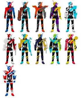 Build's white, red and gold-coloured replacement final form, accessed using the FullFull GoldRabbit Bottle, created as a replacement to Genius Form, which was lost during the final battle with Evolt. This form has heightened reaction times, superspeed and the ability to neutralise Nebula Gas, as well as the ability to summon clones of his main ten Best Match forms. This form debuts in Part 6 of Kamen Rider Heisei Generations ETERNAL.Male Template and Build Driver asset by