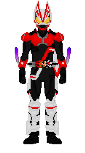 Kamen Rider Geats is the rider identity used by Ace Ukiyo. Using the Desire Driver and a Core ID, Kamen Rider Geats is capable of assuming his personalised base form, allowing him to enter the Desire Grand Prix. With the addition of Raise Buckles, Geats is capable of using more powerful armored forms.