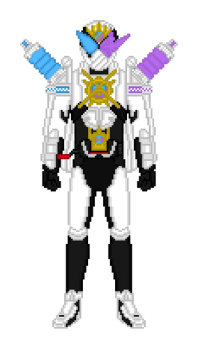Geiz's black, red and blue-coloured Rider Armour, is themed after a watch, Hiragana and Kamen Rider Build. The visor of this form spells out 'Build' in Hiragana. In this form, Geiz has the use of the Drill Crusher Crusher as well as the powers of the Rabbit and Tank Halfbodies via the empty Fullbottle-themed shoulders. This form debuts in Kamen Rider Zi-O Episode 5.Male Template asset by