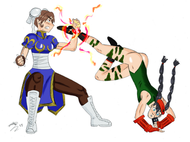 This is also and old work that I had in my previous account. I made up my mind I would only upload new stuff into this one, however I think this one wasn't that bad so here it is; Mai and Chun li performing a simultaneous attack against other 2 opponents.Mai Shiranui SNK©.