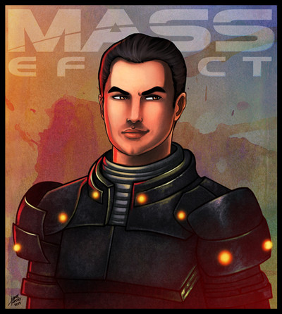 male Shep in Mass effectbackground is N7 wallpaper :3