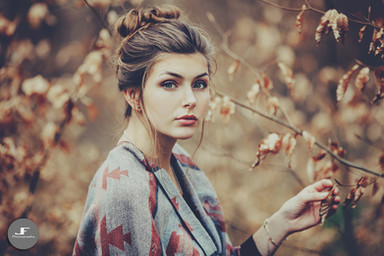 То, что у нее за спиной - тона осени и умиротворяющая тишина леса.