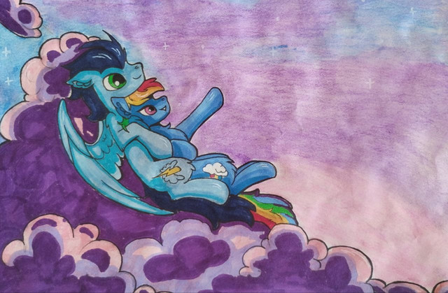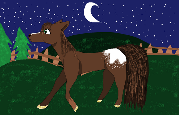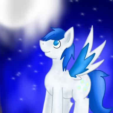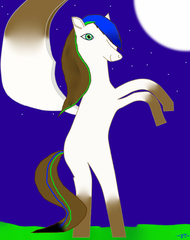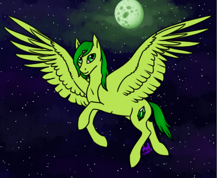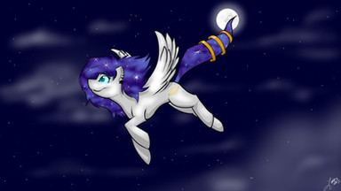 A pegasus pony kind of hovering at night.More practice with backgrounds, really just added the pegasus to give a focal point to the drawing. Also trying to practice shading (which I desperately need practice on).