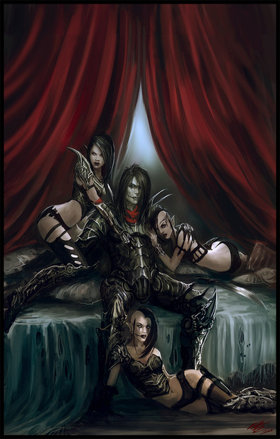 Amazing work .. this is just eye-candy .. the details on the vampire dude and all the ladies are top-notch .. the architectural elements in the background is so well done too ... marvelous